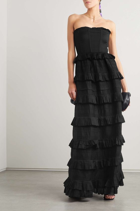 2. Black Ruffled Strapless Maxi Dress