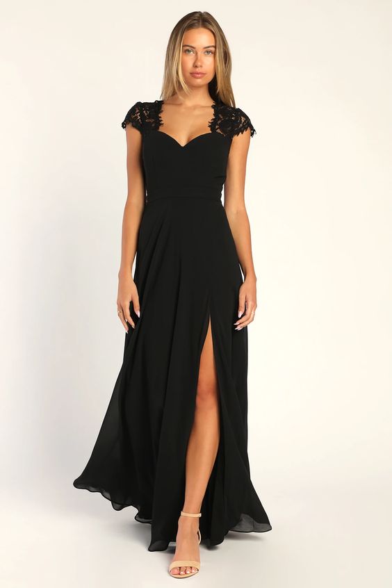 3. A Column Maxi Dress with Black Cap Sleeves