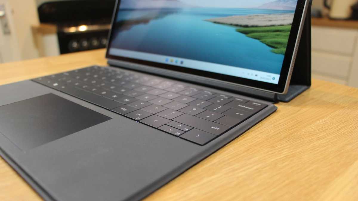 The buttons work quickly and are easy to use, and the case makes it strong. Its keyboard is better than that of the Surface Pro 9, its hardware is more satisfying than that of Samsung, and it’s almost as good as a MacBook.