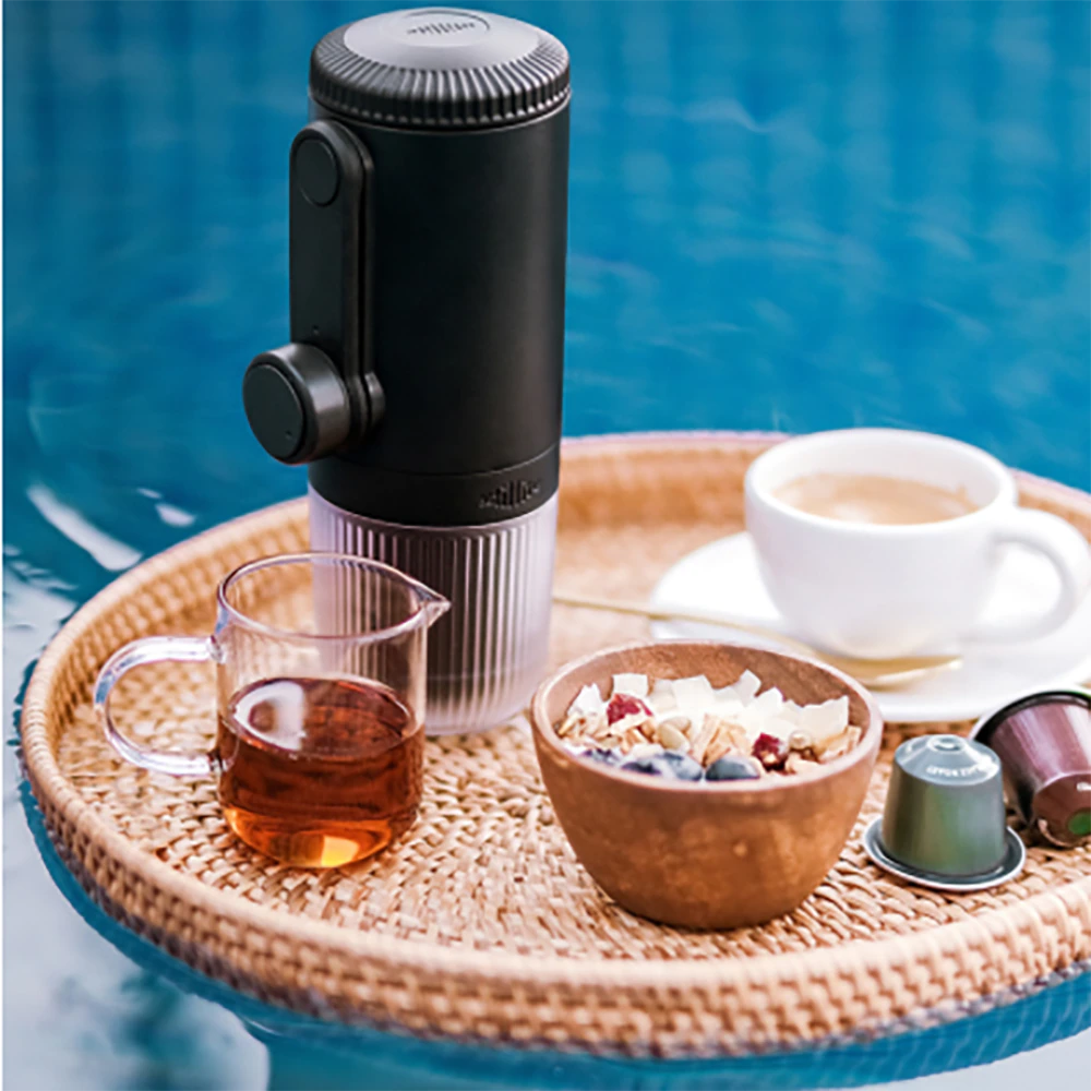 For those seeking a portable coffee maker with numerous uses, this high-tech model is perfect. It contains an integrated rechargeable battery, an LED temperature and battery level indicator, and a function that prevents boiling if it senses that there is no water within. Moreover, the stainless steel water tank’s brewing system produces a hot cup of coffee or one to two ounces of espresso in three to four minutes. Both ground coffee and NS capsules are suitable with it. This travel-friendly coffee maker is portable and comes with a carry case.