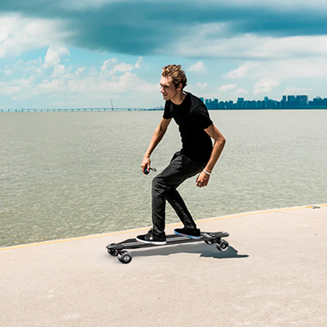 The RazorX Longboard Electric Skateboard, which has a 125-watt, geared, rear-wheel-drive motor with kick start capability and is manufactured almost entirely of premium 5-ply bamboo, was by far the finest electric skateboard we tested. A portable remote that was included with it also provided an accurate response.